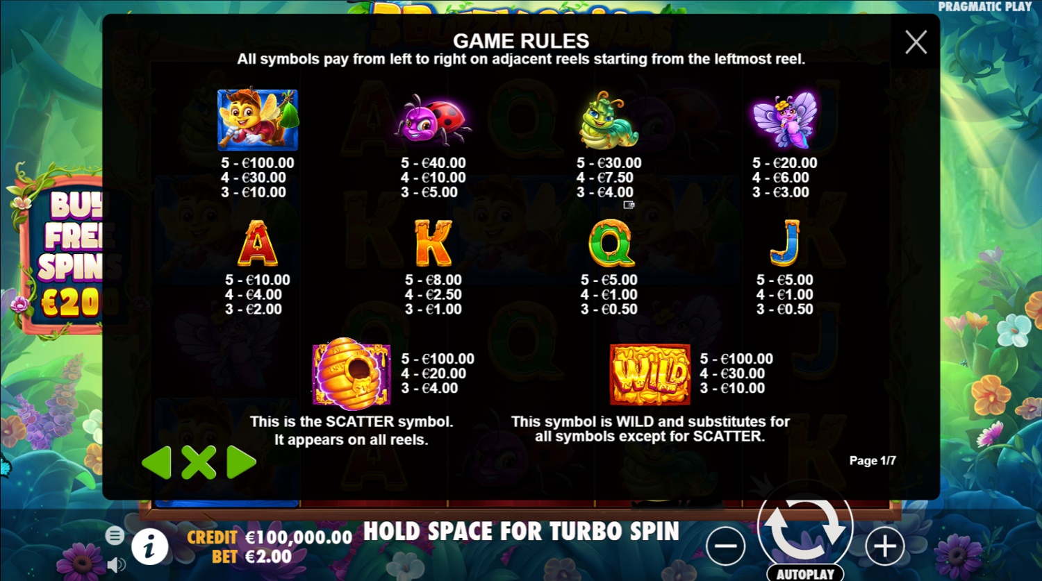 Pragmatic Play’s 3 Buzzing Wilds is a charming and feature-rich slot that brings the bustling world of insects to life. Set against a lush forest backdrop, this 5-reel, 4-row game offers players 20 fixed paylines and a delightful array of bug-themed symbols. With its medium-high volatility and a generous RTP of 96.03%, 3 Buzzing Wilds presents an exciting balance of frequent wins and big payout potential.
