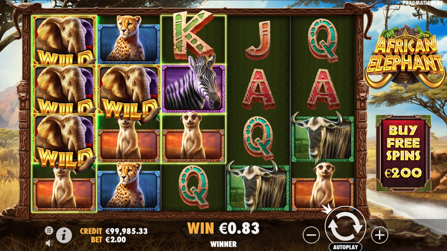 The most innovative aspect of African Elephant is the Wild Shape feature. During any spin, a random pattern may appear on the reels, framing certain positions. All symbols within this frame transform into wilds, potentially creating lucrative winning combinations. This feature adds an element of surprise and excitement to every spin.