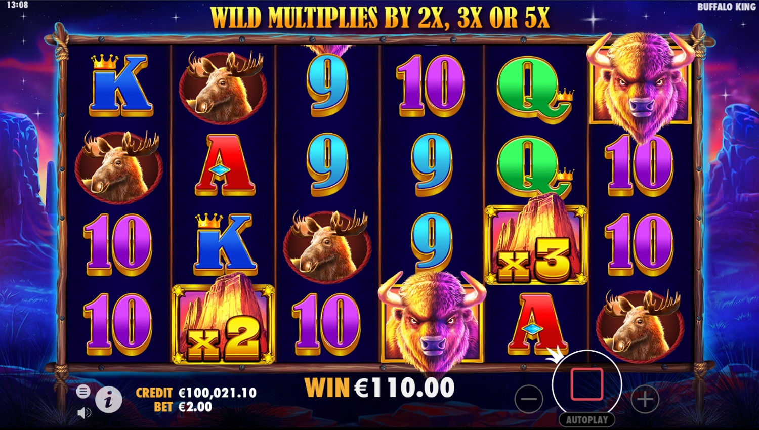 Buffalo King features a Return to Player (RTP) rate of 96.06%, which is slightly above the industry average. This RTP, combined with the game’s high volatility, creates a balanced risk-reward profile that appeals to players seeking the thrill of potentially large payouts.