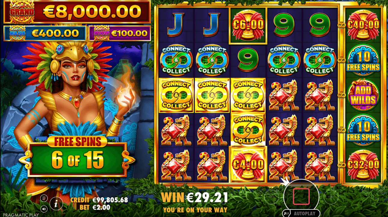 - The Connect & Collect Feature is a highlight of this slot. When the Connect & Collect symbol appears, it triggers a cash win if connected to special positions on reel 3 and/or reel 6.