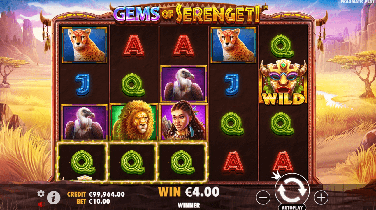 Gems of Serengeti features a 5×4 reel layout with 20 paylines.