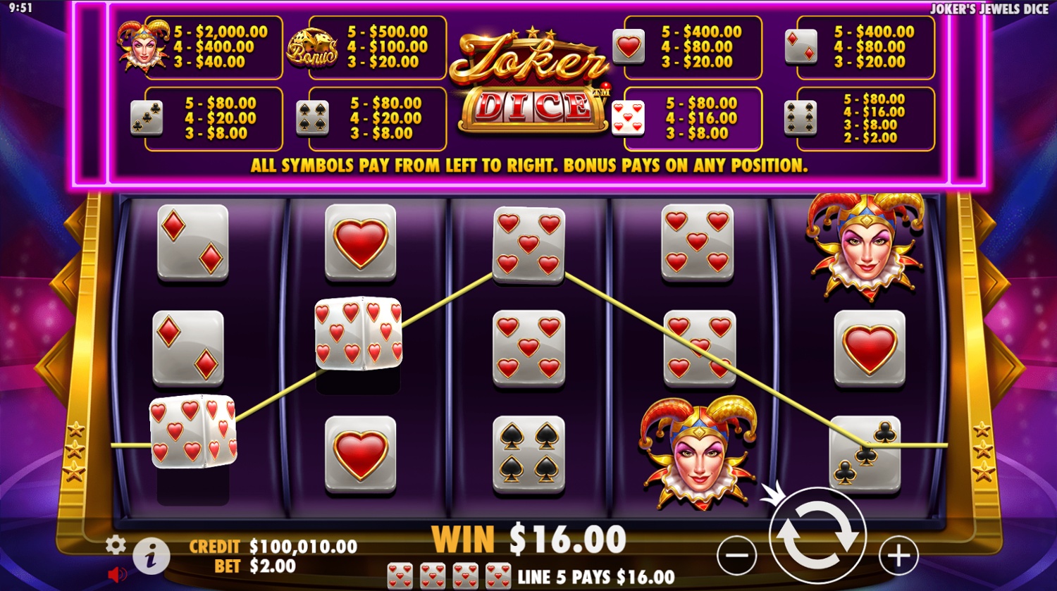 Joker's Jewels Dice Key Game Features